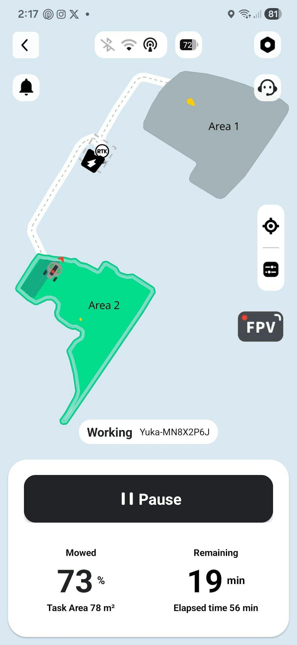 YUKA mini's AI algorithm guarantees thorough lawn coverage.